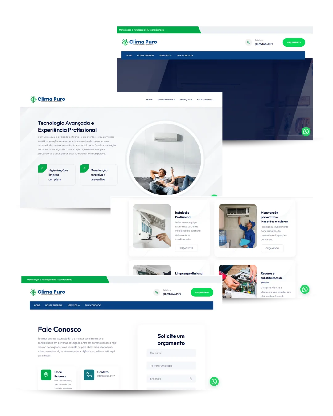 Seu site terá um design moderno e organizado, pensado para transmitir confiança e valorizar seus serviços.